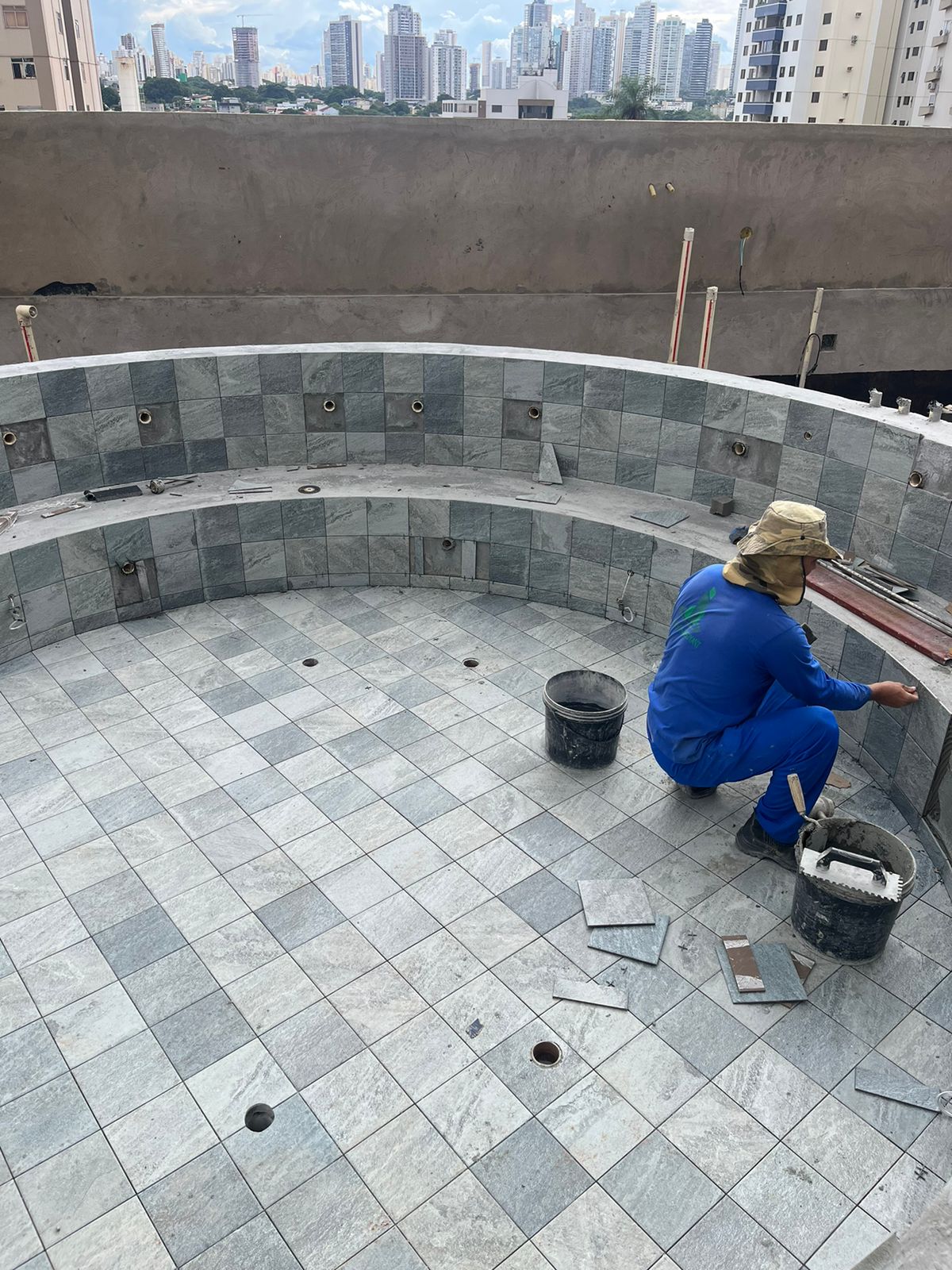 Uma obra com contenção em estacas de concreto justapostas e laje de subpressão, fundação em estaca hélice contínua, estrutura em concreto armado, instalações elétricas com pré disposição para infraestrutura dos seguintes itens: automação completa, 3 vagas de garagem com previsão de 1 ponto de carregamento veicular elétrico para cada unidade, segurança; CFTV; instalação de ar condicionado em todos os quartos e salas, água fria e quente com aquecimento a gás, sistema moderno de exaustão para as churrasqueiras a carvão dos apartamentos, esquadrias com persianas automáticas integradas, um paisagismo de destaque com sistema de irrigação automatizado e fachada contemporânea.